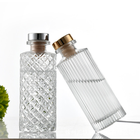 Luxo elegante Único Vertical 150ml claro Vintage Aroma Reed Difusor De Vidro Fragrância Garrafa com Rolha