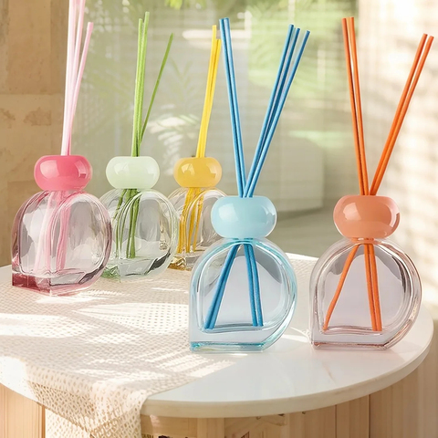 Luxo Logotipo Personalizado Colorido Único 80ml claro Fragrância Perfume Reed Difusor Garrafa De Vidro com Tampa De Resina