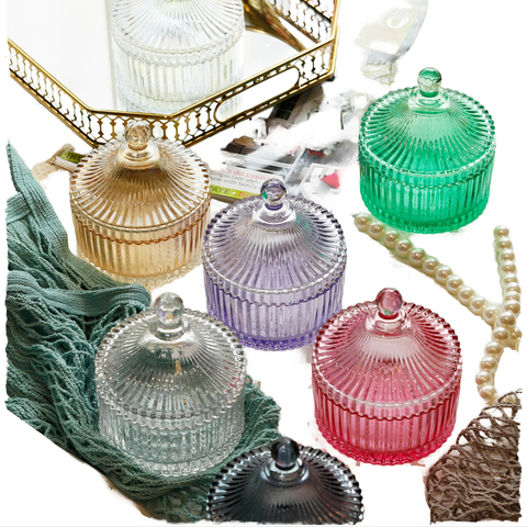 Personalizado Colorido Ampla Boca Impressão 75ml 160ml 250ml 500ml Decoração Home Jarra De Vidro De Vela com Tampa